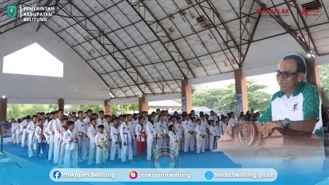 Belitung, setda.belitung.go.id – Bupati Belitung, H. Djoni Alamsyah Hidayat, S. Sos., menghadiri sekaligus memberikan sambutan hangat dalam pembukaan Kejuaraan Taekwondo Challenge Piala Yusril Ihza Mahendra yang digelar di Pendopo Tanjung Kelayang, Sabtu pagi (25/04/2026).