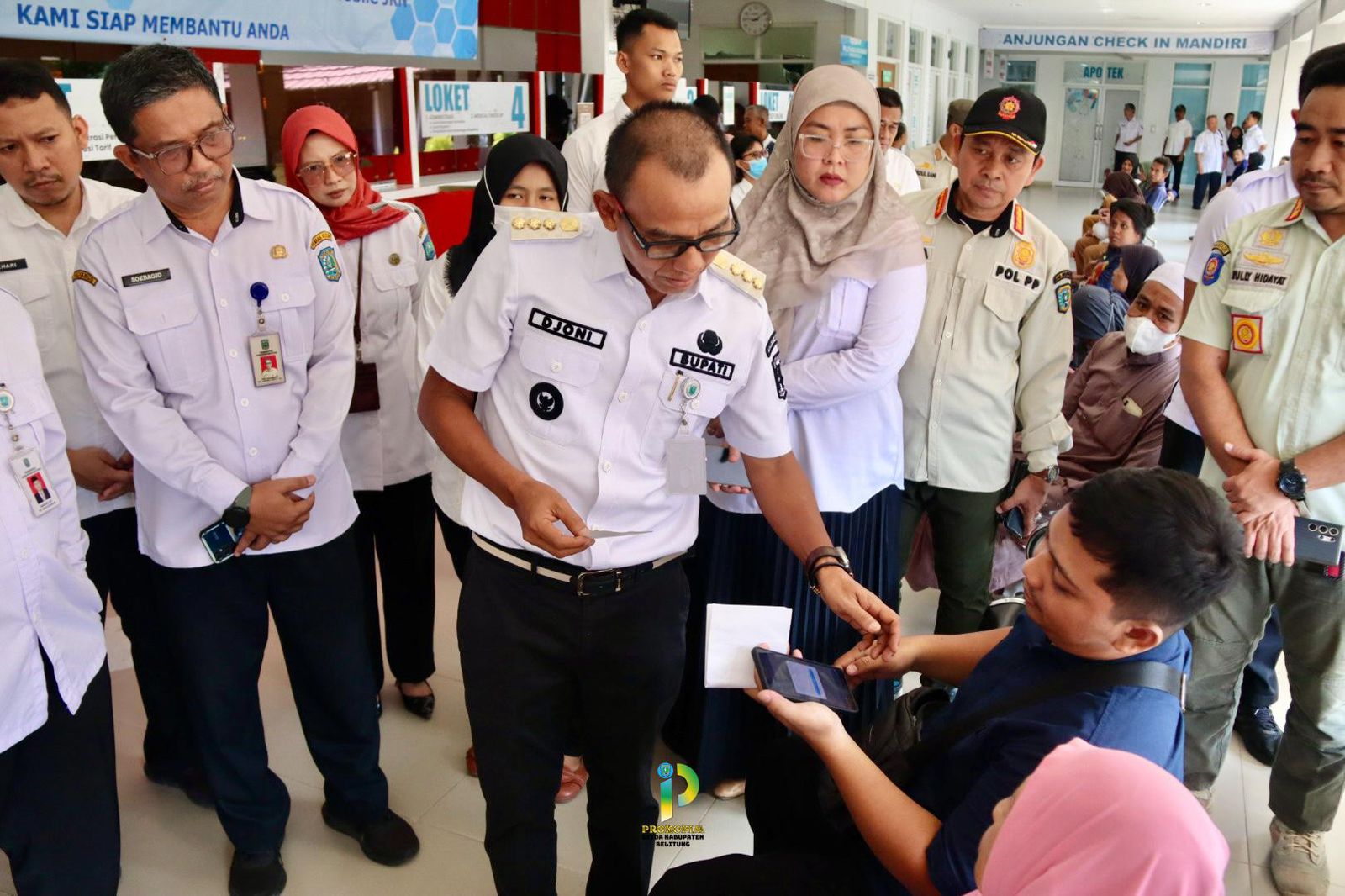 Bupati Belitung, H. Djoni Alamsyah Hidayat, S.Sos. didampingi Sekretaris Daerah Kabupaten Belitung, H. Marzuki, S.IP. dan jajaran memberikan apresiasi terhadap etos kerja ASN yang semangat melayani meski masih dalam momen Idul Fitri. “Dari seluruh perangkat daerah yang kita kunjungi baik pelayanan umum di rumah sakit, luar biasa etos kerja ASN tidak melihat bahwa momen hari hari raya yang tersisa mengurangi semangat mereka”, ujar Djoni.