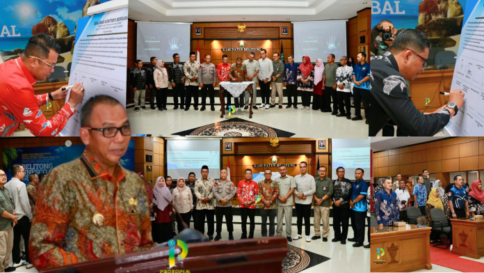 Tanjungpandan, setda.belitung.go.id – Bupati Belitung, Djoni Alamsyah Hidayat melaunching Aplikasi Sistem Penerimaan Siswa Baru (SPMB) Tahun ajaran 2025-2026 Kabupaten Belitung sekaligus melakukan Penandatanganan Komitmen Bersama dukungan penyelenggaraan SPMB, pada Jum’at (13/06), bertempat di Ruang Pertemuan Pemkab Belitung.