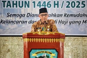 Tanjungpandan, setda.belitung.go.id – Bupati Belitung, Djoni Alamsyah Hidayat didampingi Wakil Bupati Belitung, Syamsir dan Pj. Sekretaris Daerah Kabupaten Belitung, Marzuki melepas Keberangkat Jemaah Calon Haji Kabupaten Belitung Tahun 1446 H/2025 M, Kamis (08/05) 2025, bertempat di Gedung Serba Guna H. Ishak Zainudin Tanjungpandan.