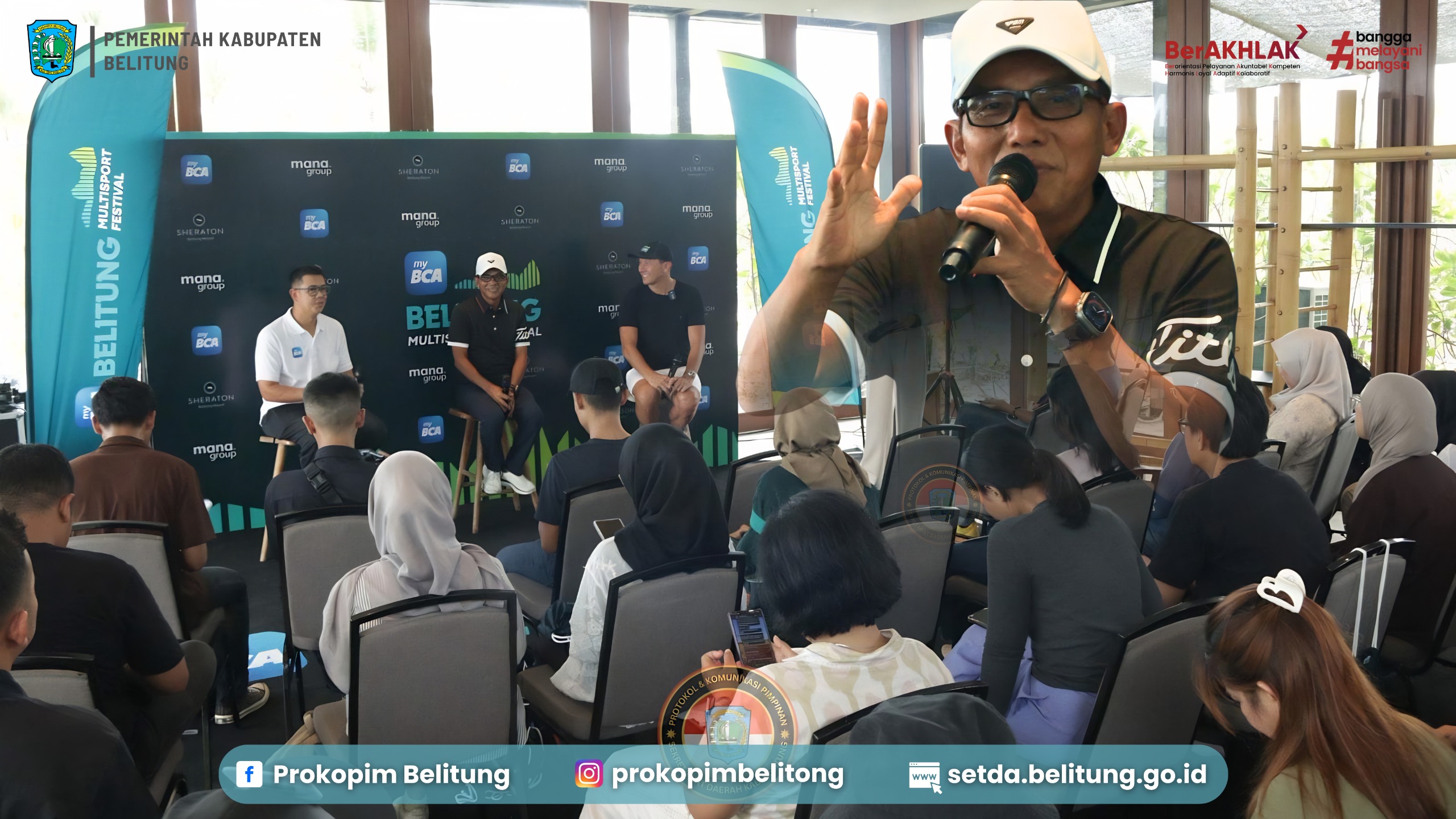 Belitung, setda.belitung.go.id – Bupati Belitung, H. Djoni Alamsyah Hidayat, S. Sos., menyampaikan tentang keindahan alam dan keamanan Belitung saat hadir pada Press Conference myBCA Belitung Multisport Festival 2026, bertempat di VIP Space KEK Tanjung Kelayang (Sheraton Belitung Resort), Jumat sore (24/04/2026).