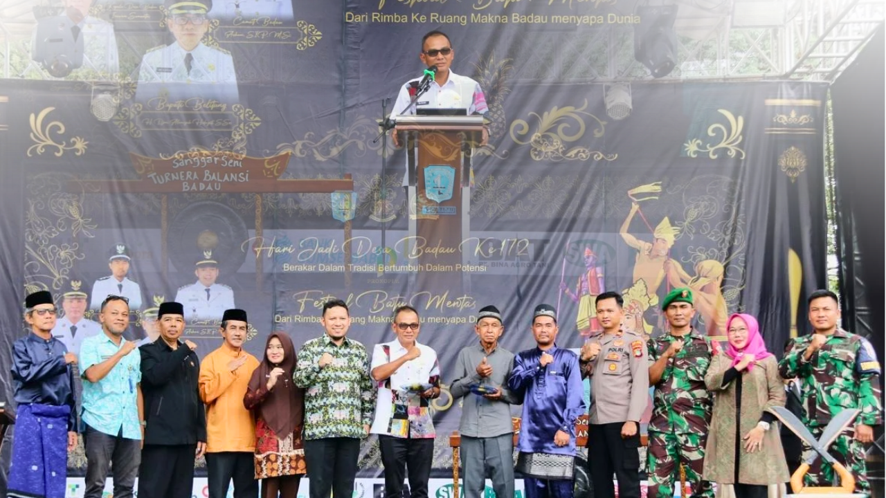 Peringatan Hari Jadi Desa Badau mengusung tema “Hari Jadi Desa Badau -ke-172 , Badau Berakar Dalam Tradisi, Bertumbuh Dalam Potensi” dan tema Festival Batu Mentas 2025 “Dari Rimba Ke Ruang Makna, Badau Menyapa Dunia”. (Bagian Protokol dan Komunikasi Pimpinan Setda Kabupaten Belitung)