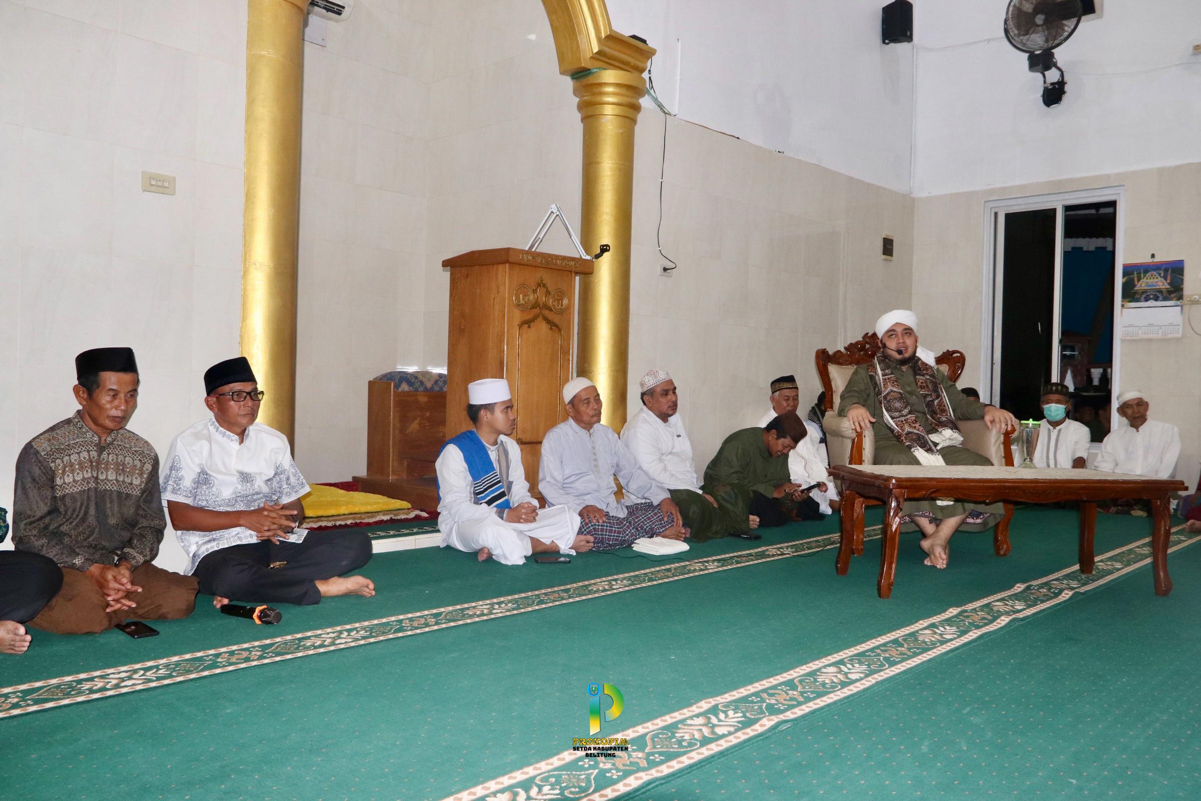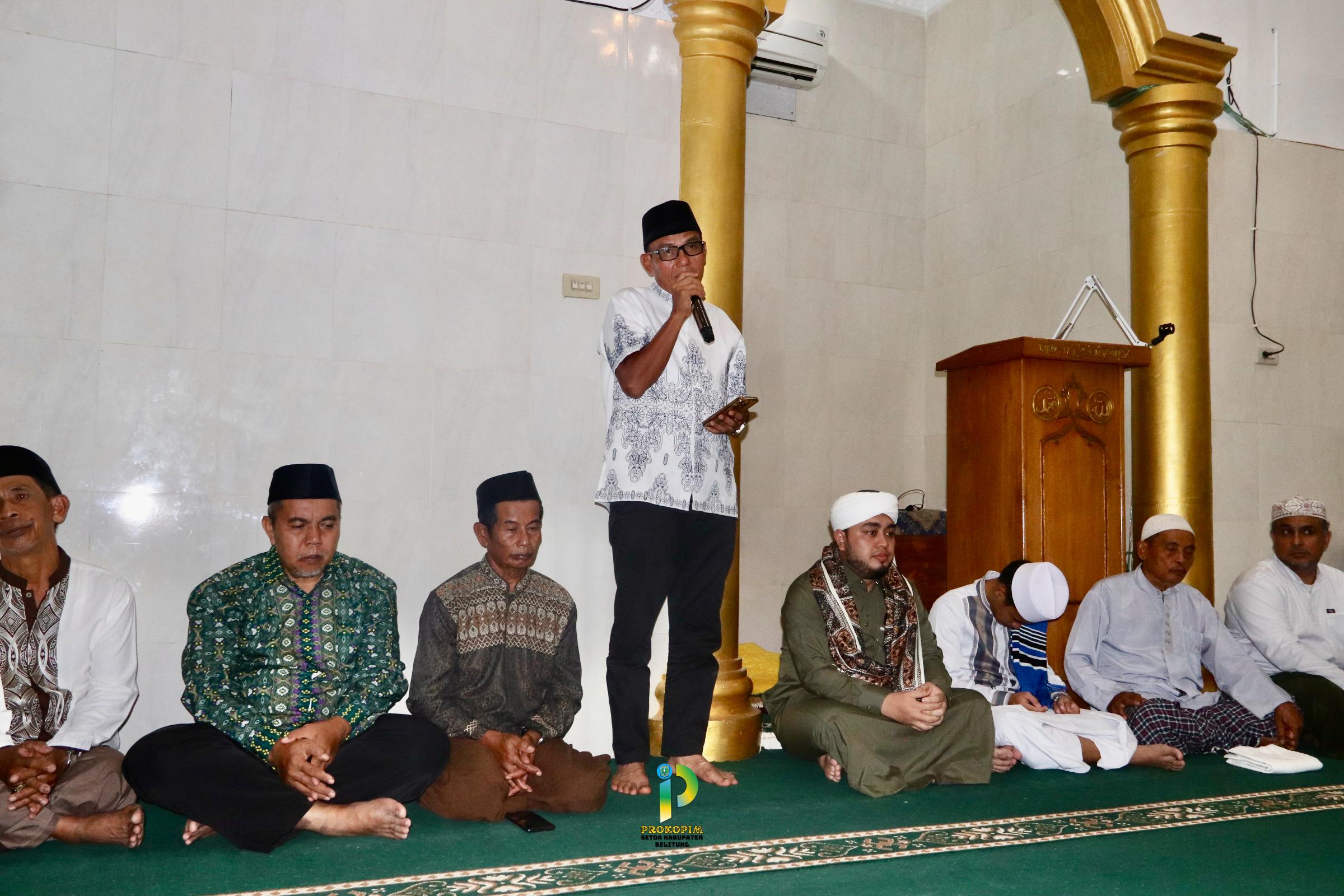 Belitung, setda.belitung.go.id – Bupati Belitung, H. Djoni Alamsyah Hidayat, S.Sos menekankan bahwa ibadah shalat bukan sekadar beban atau ritual rutin, melainkan sebuah “kompas moral” yang seharusnya menuntun langkah hidup dan perilaku masyarakat dalam kehidupan sehari-hari. Hal ini disampaikan Bupati dalam sambutannya saat menghadiri Peringatan Isra Mi’raj Nabi Muhammad SAW bersama para tokoh agama dan jemaah, di Surau Al-Shahin, Sabtu malam (24/01/2026).