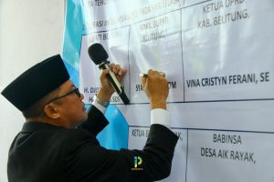 Tanjungpandan, setda.belitung.go.id – Pemerintah Kabupaten Belitung meluncurkan “Gerakan Ikan BELANAK” sebagai langkah strategis untuk meningkatkan Kualitas Sumber Daya Manusia (SDM) yang berdaya saing, selaras dengan misi daerah mewujudkan masyarakat sejahtera. Gerakan ini menekankan kolaborasi multi pihak serta integrasi dengan sejumlah program Rencana Pembangunan Jangka Menengah Daerah (RPJMD) untuk memastikan tumbuh kembang anak berjalan optimal. Hal ini disampaikan oleh Wakil Bupati Belitung, Syamsir dalam sambutannya saat menghadiri acara Deklarasi Gerakan Ikan BELANAK (Ingat, Kawal, Awasi dan Nurturing/mengasuh: Besame Lindungi dan Jage Anak Kita) Kabupaten Belitung, Selasa (28/10/2025), bertempat di Kantor Desa Aik Rayak, Kecamatan Tanjungpandan.