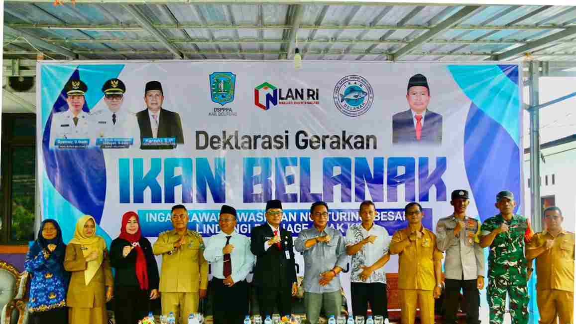 Tanjungpandan, setda.belitung.go.id – Pemerintah Kabupaten Belitung meluncurkan “Gerakan Ikan BELANAK” sebagai langkah strategis untuk meningkatkan Kualitas Sumber Daya Manusia (SDM) yang berdaya saing, selaras dengan misi daerah mewujudkan masyarakat sejahtera. Gerakan ini menekankan kolaborasi multi pihak serta integrasi dengan sejumlah program Rencana Pembangunan Jangka Menengah Daerah (RPJMD) untuk memastikan tumbuh kembang anak berjalan optimal. Hal ini disampaikan oleh Wakil Bupati Belitung, Syamsir dalam sambutannya saat menghadiri acara Deklarasi Gerakan Ikan BELANAK (Ingat, Kawal, Awasi dan Nurturing/mengasuh: Besame Lindungi dan Jage Anak Kita) Kabupaten Belitung, Selasa (28/10/2025), bertempat di Kantor Desa Aik Rayak, Kecamatan Tanjungpandan.