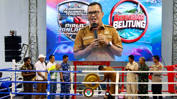 Tanjungpandan, setda.belitung.go.id – Wakil Bupati Belitung, Syamsir, S.I.Kom menghadiri acara pembukaan Kejuaraan Tinju Amatir Terbuka Piala Danlanud H.AS. Hanandjoeddin, Senin (20/04/2026), bertempat di GOR Tanjungpandan. Kegiatan ini mendapat dukungan penuh dari Pemerintah Kabupaten Belitung sebagai bagian dari upaya pembinaan olahraga dan pengembangan potensi generasi muda di daerah.